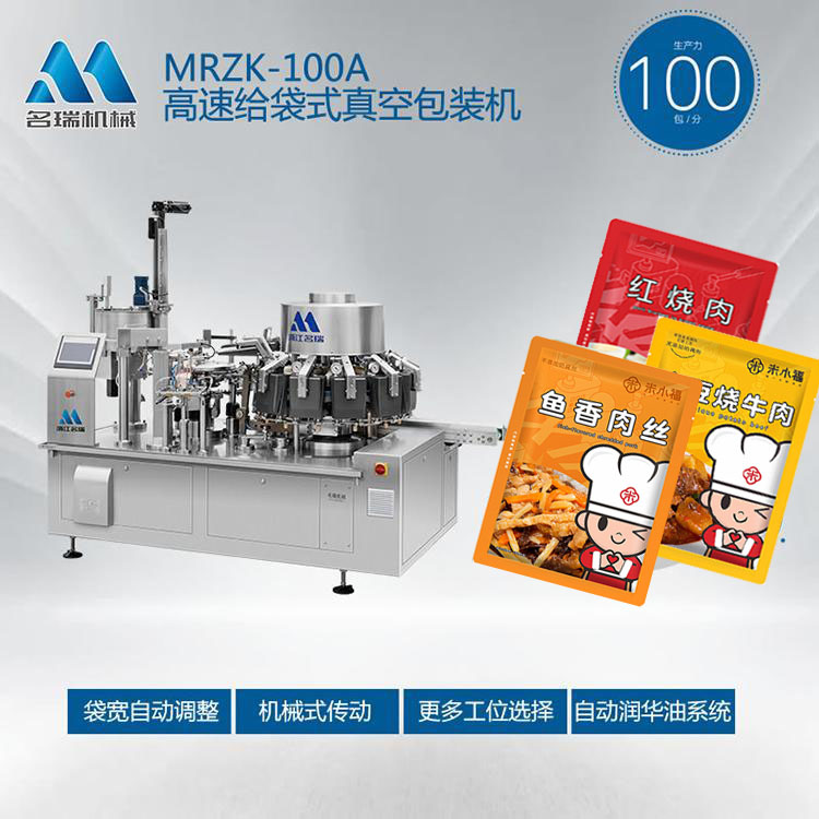 食品包裝袋與食品包裝機又有著密切關(guān)聯(lián)。名瑞機械食品包裝機,符合食品加工機械的衛(wèi)生標準,機器上與物料或包裝袋接觸的零件采用304不銹鋼或其他符合食品衛(wèi)生需求的材料加工,保證食品的衛(wèi)生和安全。機器性能穩(wěn)定,包裝速度快,質(zhì)量可靠,物美價廉,給袋式包裝機價格在16~20萬之間,給袋式真空包裝機價格在36~40萬之間,具體詳情可咨詢客服。