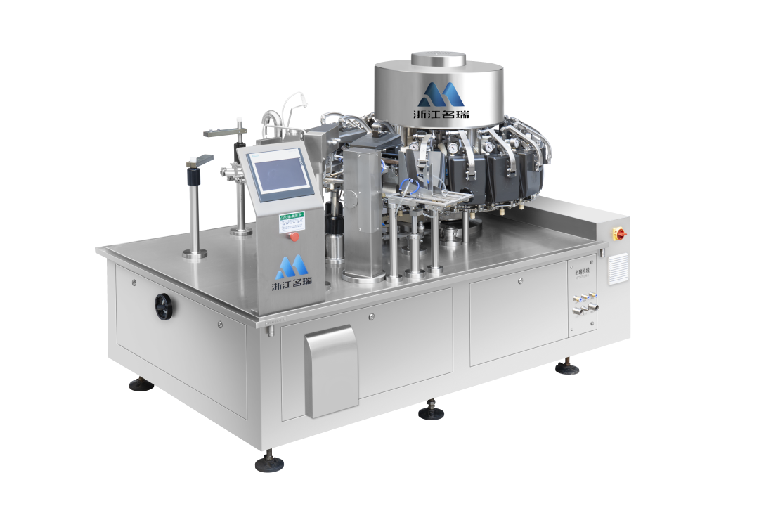 給袋式全自動包裝機由兩種旋轉式機體組成(分別為充填系統(tǒng)和直空系統(tǒng))直空系統(tǒng)為連續(xù)式施轉運動。