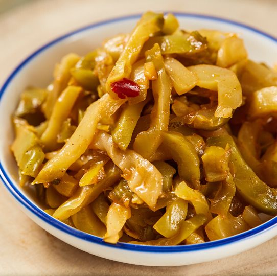 榨菜,有著“醬菜小茅臺(tái)”的美稱,它其與法國(guó)酸黃瓜、德國(guó)甜酸甘藍(lán)并稱世界三大名腌菜。榨菜是芥菜中的一類,是一種半干態(tài)咸菜,以莖用芥菜為原料腌制而成。因加工時(shí)需用壓榨法榨出菜中水分,故稱“榨菜”。