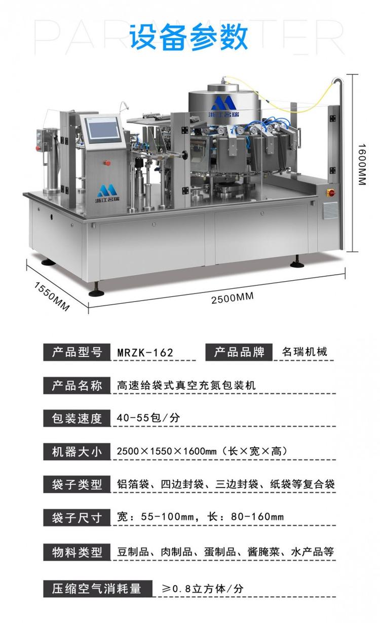 【浙江名瑞】全自動稱量給袋式真空包裝機(jī),MRZK-162高速真空充氮包裝機(jī)!