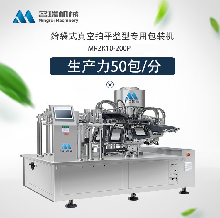 浙江名瑞智能包裝科技有限公司研發(fā)的MRZK10-200P包裝機(jī)器在水平狀態(tài)下對包裝中的物料進(jìn)行振動和成型,以確保物料的整體均勻分布。在 MRZK10-200P 之前,100 度真空一直是市場上無法實(shí)現(xiàn)的標(biāo)準(zhǔn),而 MRZK10-200P 將這種不可能變?yōu)榭赡?。臥式真空室的研制成功是包裝機(jī)械的一次重要變革,真空給包裝帶來了新的可能。